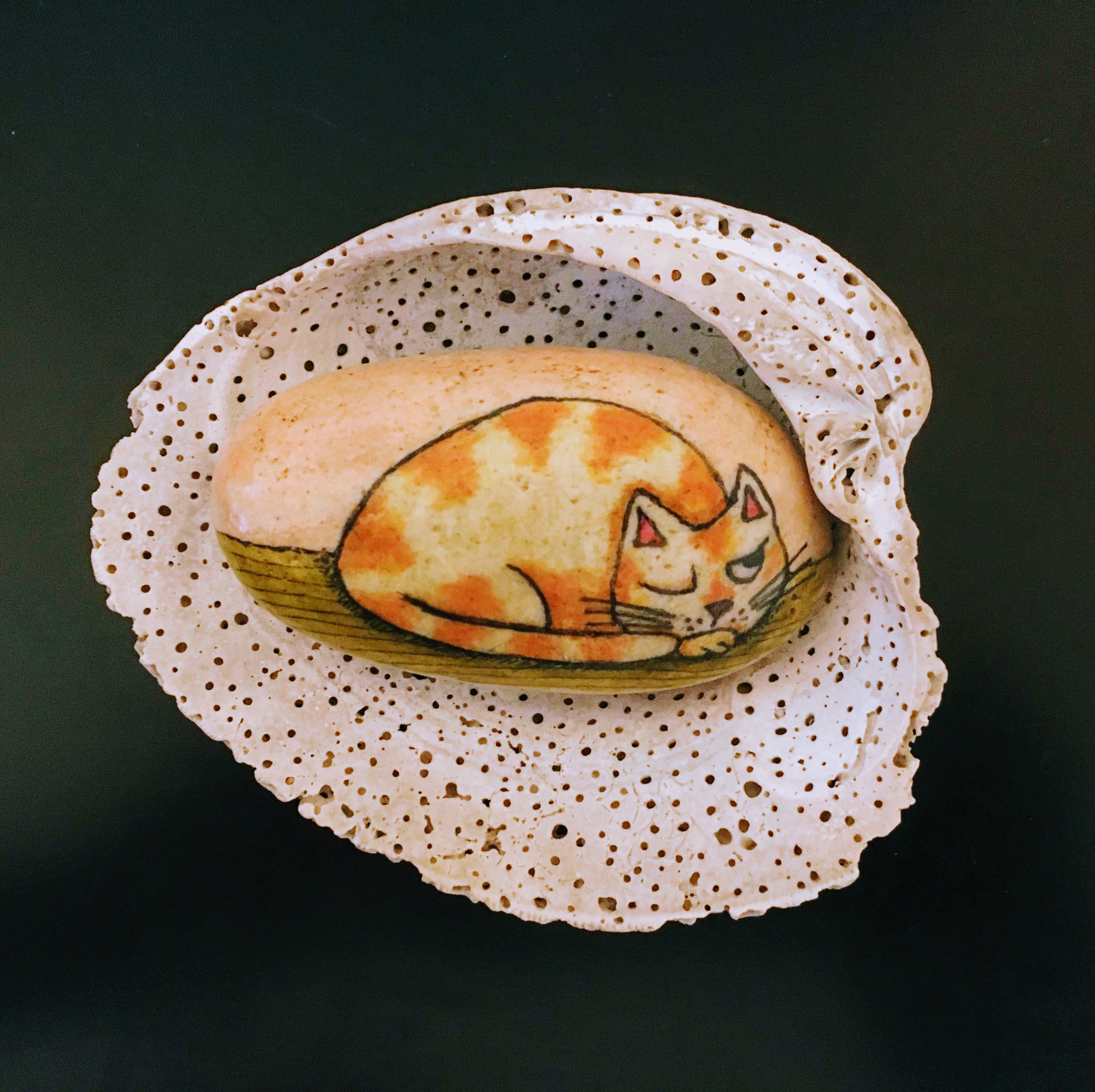 My most recent hobby is drawing on stones and shells. I’m open to experimenting and mixing different media to uncover what works best on the rough textures. Have an idea what to draw next? Drop me a line!
