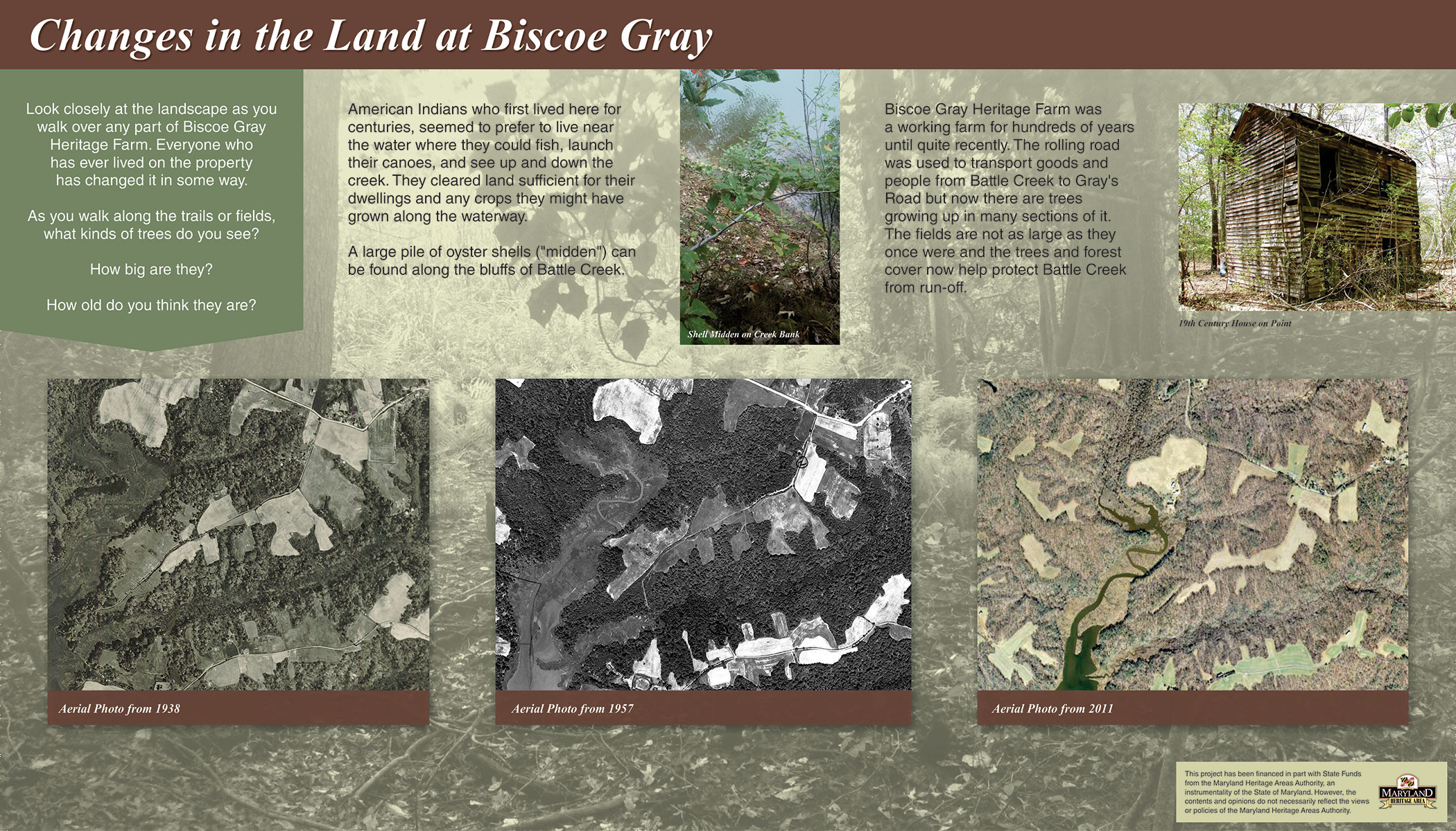 Biscoe Gray Heritage Farm, located in Calvert County, MD is a historical settlement rich with natural and historical resources. It showcases settlements through the ages - from Native American transitory to a small colonial farming site to 20th-century tobacco farming. The historical park offers lessons, equestrian trails, nature exploration, and educational programs.
