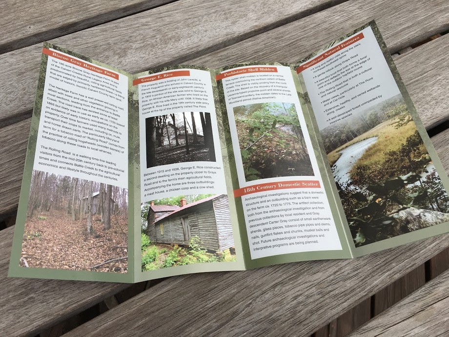 The client provided a folder of digital images and text and left the design process to me. The project constraints were a short time frame and no budget for professional photography. I had already worked on the site signage and interpretive sign layouts, so I embraced the creative freedom and the limitations and built upon the established typography and color schemes. When the client reviewed the initial brochure concept, they were so excited and had only minor changes.